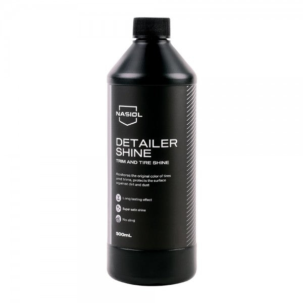 Nasiol DetailerShine is an exclusive formula to clear dirt and grime from the tires while giving them a fantastic shine. Nasiol DetailerShine restores the original color of tires and the trim portions with its powerful deep glaze formula, and it makes removal of dirt a breeze for future cleaning.